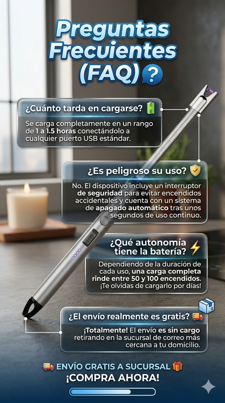 "Me encanta para las velas de mi casa. Es súper práctico no tener que andar buscando fósforos o cargando encendedores viejos. ¡Y el diseño dorado queda divino!" - Carla P. ⭐⭐⭐⭐⭐