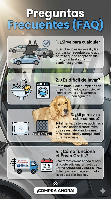 "Increíble calidad. Tengo un Golden que pierde muchísimo pelo y con esta funda el auto queda impecable. El envío fue súper rápido."