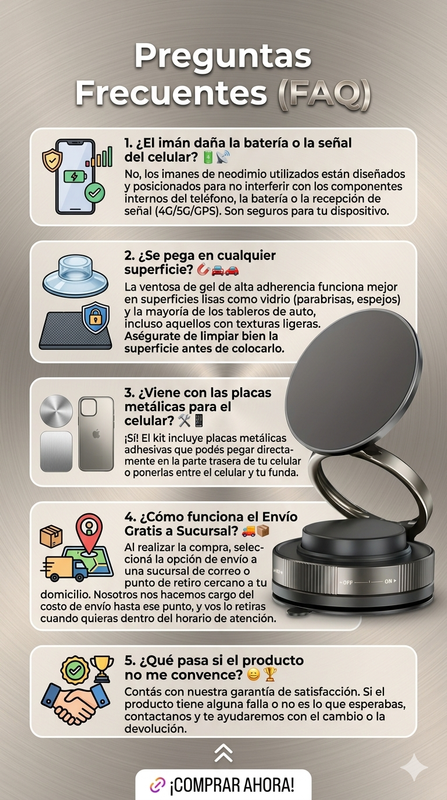 Imaginá subirte al auto, acercar tu celular al soporte y que se fije instantáneamente con un "clic" satisfactorio. Tenés tu ruta de GPS clara, tus notificaciones a la vista sin desviar la mirada de la calle, y las manos libres para conducir. Esa es la experiencia que te ofrece nuestro Soporte Magnético Extensible. Es invertir en seguridad y comodidad para cada viaje.